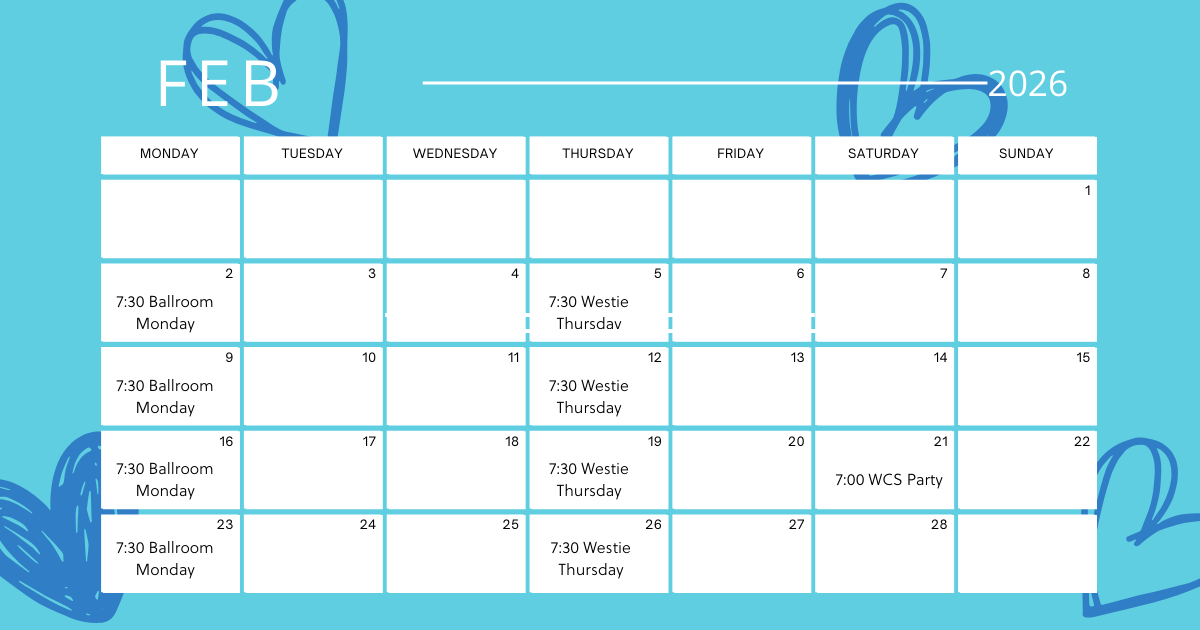 Join us for a Saturday night lesson at 7pm followed by a social dance at 8pm. Whether you’re seasoned in WCS or still learning the basics, join our community for a great night of fun. . Let’s dance