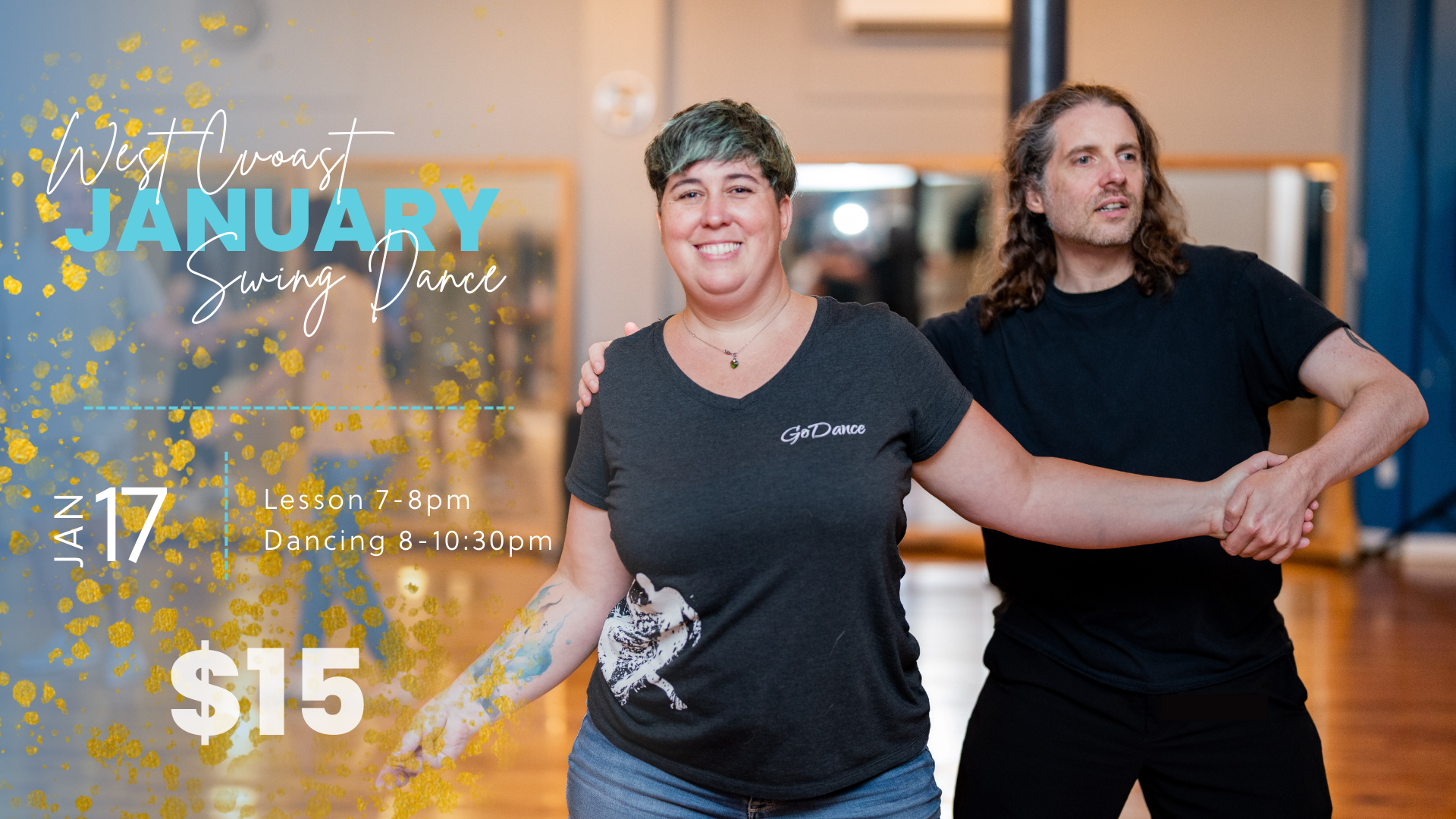 Join us for a Saturday night lesson at 7pm followed by a social dance at 8pm. Whether you’re seasoned in WCS or still learning the basics, join our community for a great night of fun. . Let’s dance